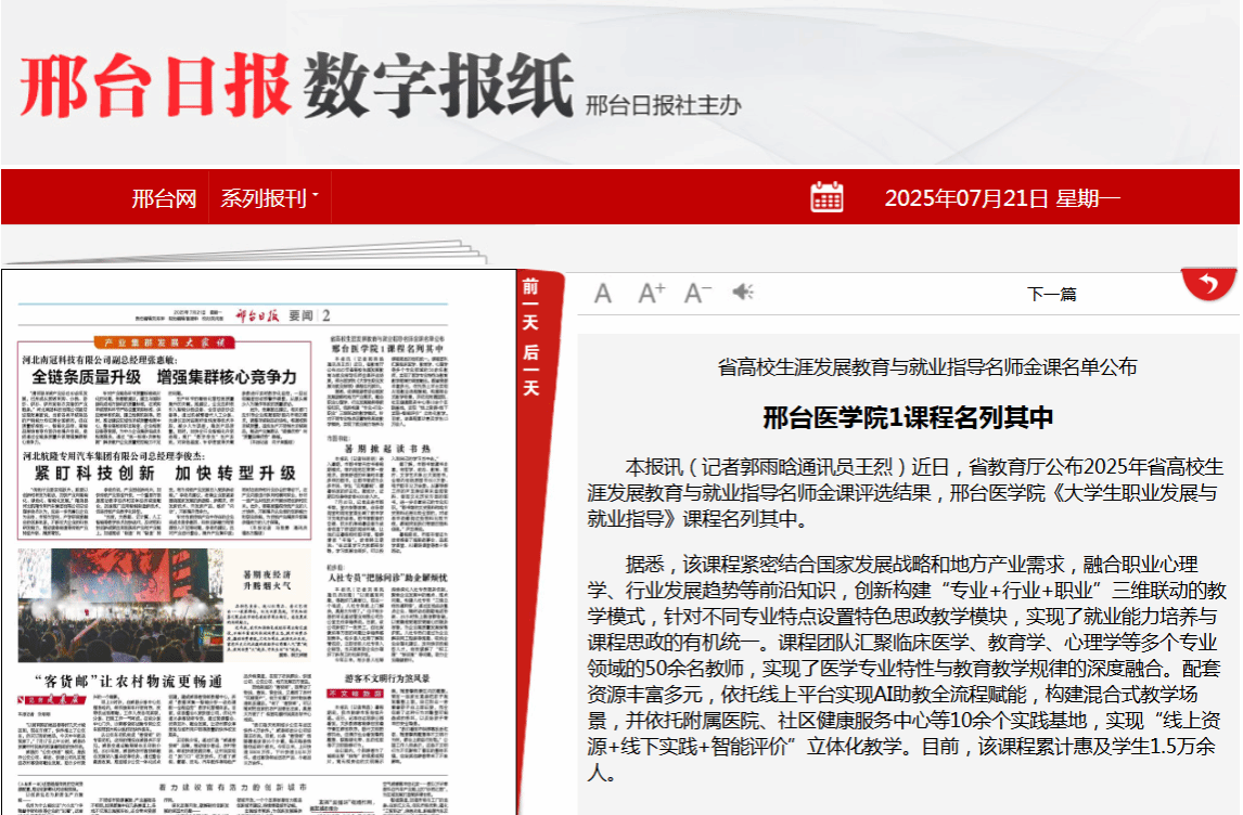 近日,省教育厅公布2025年省高校生涯发展教育与就业指导名师金课评选结果,beat365平台唯一官网《大学生职业发展与就业指导》课程名列其中。