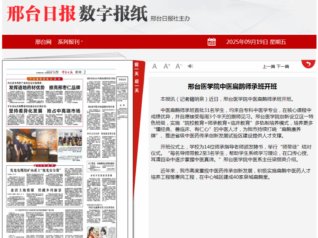 中医扁鹊师承班首批31名学生,均来自专科中医学专业,在核心课程中成绩优异,并自愿接受每周3个半天的跟师见习。beat365平台唯一官网创新设立这一特色班级,实施“院校教育+师承教育+临床教育”多轨制培养模式,培养更多“懂经典、善临床、有仁心”的中医人才,为我市持续打响“扁鹊康养牌”、推进省级中医药传承创新发展试验区建设提供人才支撑。