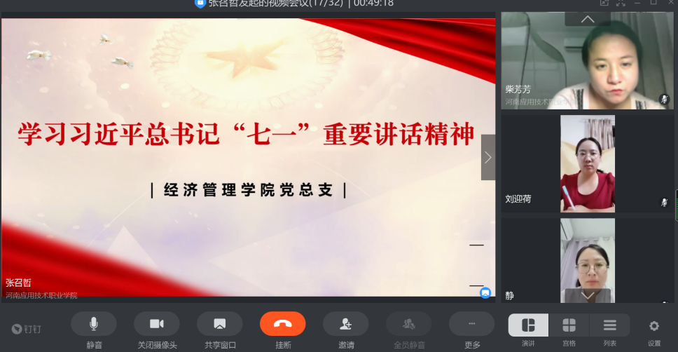 2021年7月18日,jinnianhui今年会党总支组织全体党员教师召开党史学习教育专题会议。学院党总支副书记李兆楠主持会议。