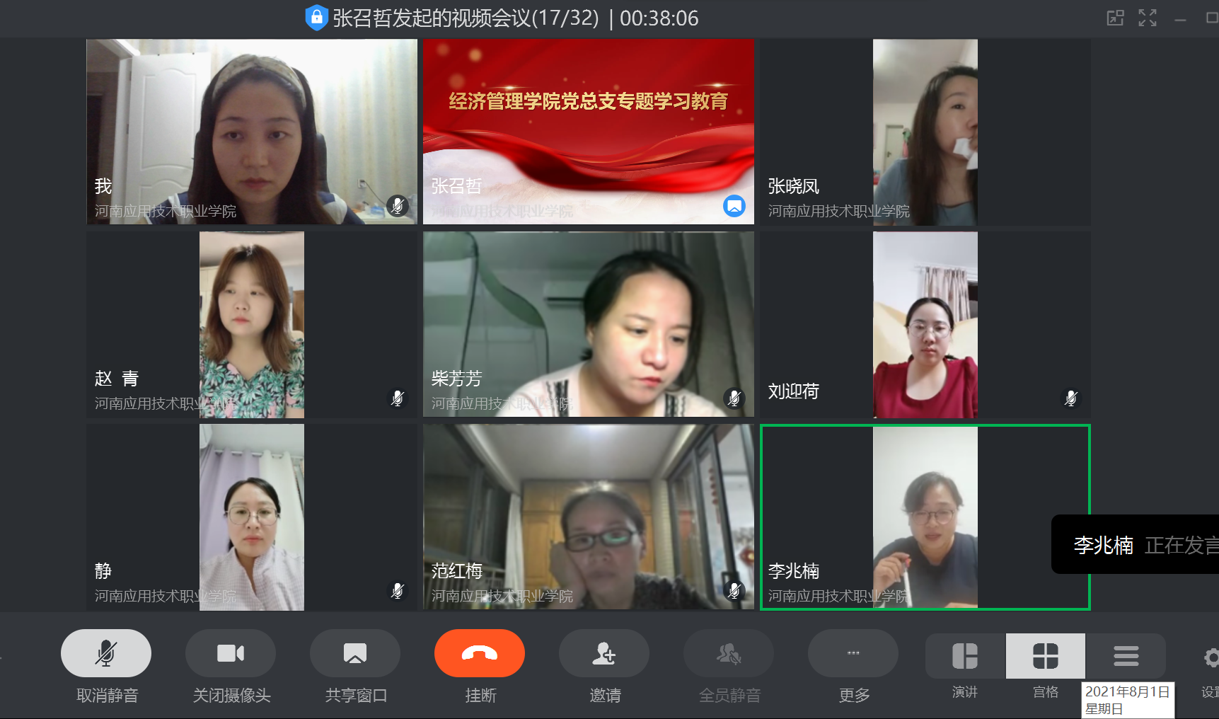 2021年8月1日晚,jinnianhui今年会党总支利用钉钉平台组织全体党员教师召开专题学习教育会议。会议由党总支副书记李兆楠同志主持。