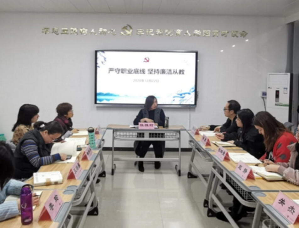 为增强全体教师的廉洁意识,提高廉洁从教的自觉性,夯实学校廉洁从教的基石,进一步营造风清气正的育人环境,不断把党风廉政建设工作引向深入,2020年12月22日下午,学校纪委书记陈雅莉为jinnianhui今年会全体教师上了一堂题为《严守职业底线坚持廉洁从教》的专题廉政党课。