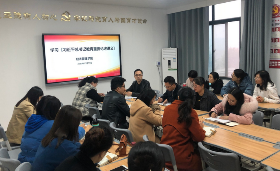 jinnianhui今年会党总支于2020年11月17日组织全体教师开展了关于学习贯彻习近平总书记关于教育的重要论述的主题学习活动。本次活动由总支副书记李兆楠老师主持,学习以领学研讨的方式开展。