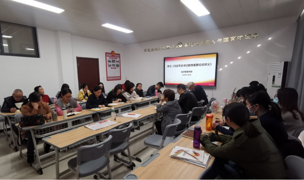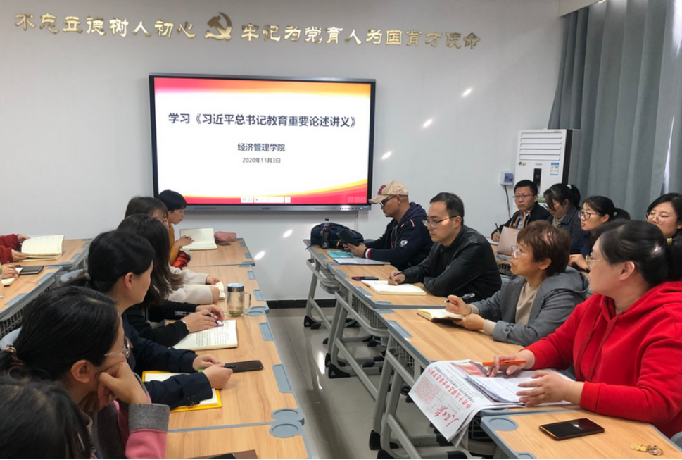 为了深入学习贯彻习近平总书记关于教育的重要论述,2020年11月3日下午,经济与管理学院党总支组织开展了《习近平总书记教育重要论述讲义》专题学习会,党总支副书记李兆楠老师带领全院教师学习了《习近平总书记教育重要论述讲义》部分内容。