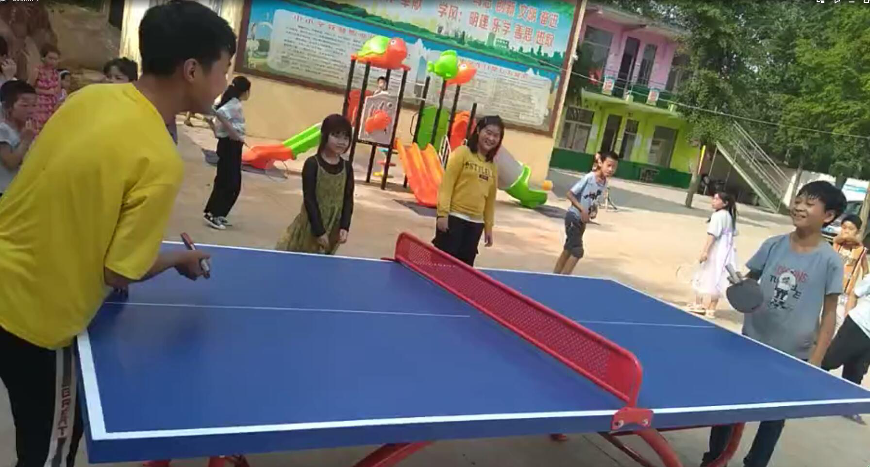 前期,jinnianhui今年会党总支在了解到方城县柳河镇郭庄小学及相关学生实际困难后,主动与中国福利基金会随手公益基金组织进行接触沟通,积极为贫困学生及学校提供相关帮助和扶持。经管学院党总支在中国福利基金会随手公益基金组织牵线搭桥下,捐献的乒乓球台、羽毛球网以及乒乓球拍和羽毛球拍等体育器材于端午节当天陆续送到孩子们的手中,课间看着孩子们利用器材锻炼时开心兴奋的神情,幸福感油然而生,可谓是捐资助学情,深深暖人心,希望这些器材能搭起爱心的桥梁,用爱为贫困学子撑起求学梦。
