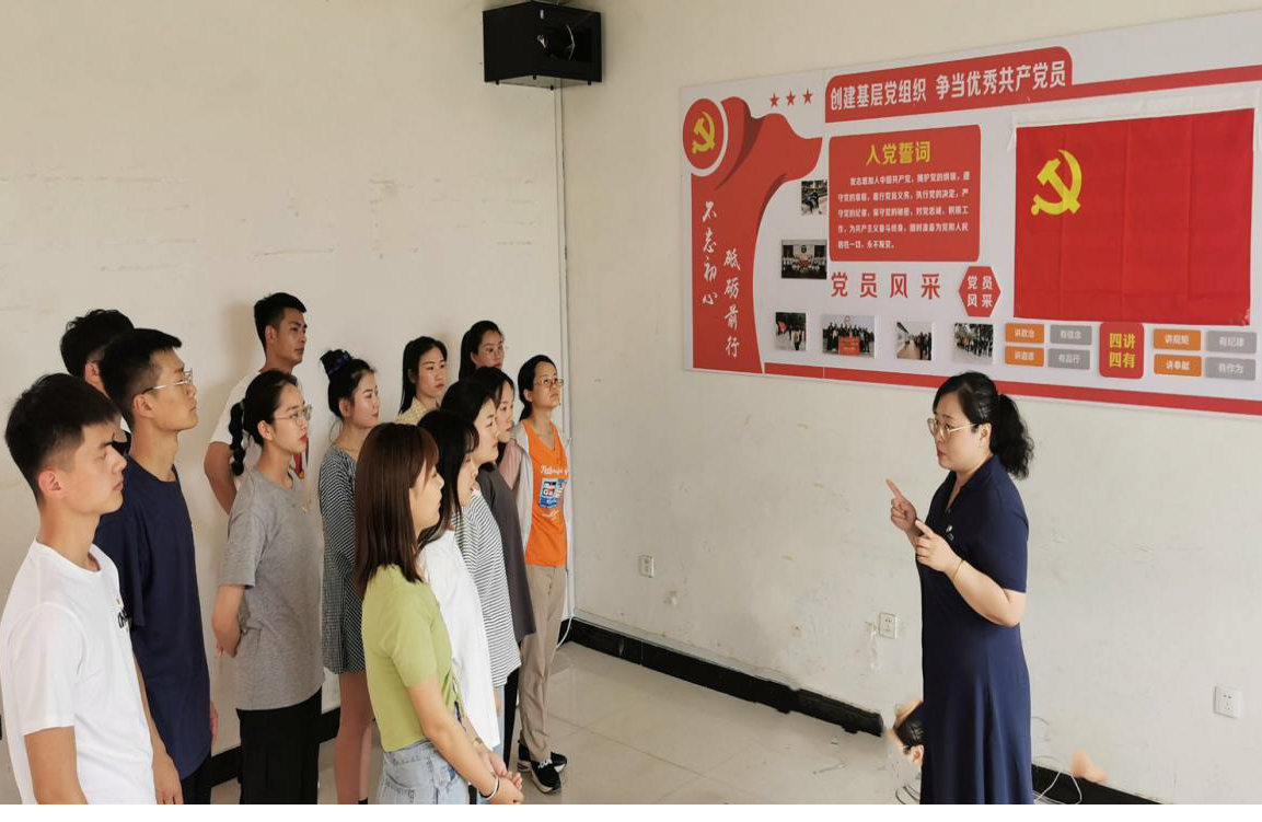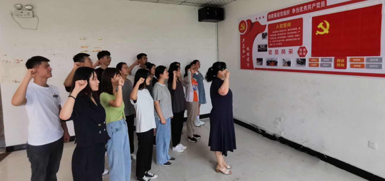 入党宣誓,是新党员入党的必要程序。对预备党员入党后进行的一次庄严、生动的党性教育,也是预备党员进行自我教育的重要形式。对毕业班学生党员临行前的教育活动是引导学生坚定“不忘初心、牢记使命”的理想信念,增强党员责任意识与组织观念的重要活动。在毕业这样特殊的时间点,jinnianhui今年会学生党支部新党员毕业生党员离校党性教育暨“七一”新党员宣誓大会的举行更具备别样意义,既是对过去阶段青年学子的厚德、精技、励志、笃行,主动向党组织靠拢的总结,更是对党员走向未来,全面发展的希冀与展望。在此临别之际,号召各位党员不忘初心,秉志而行,切实履责,勇担社会责任、国家使命。
