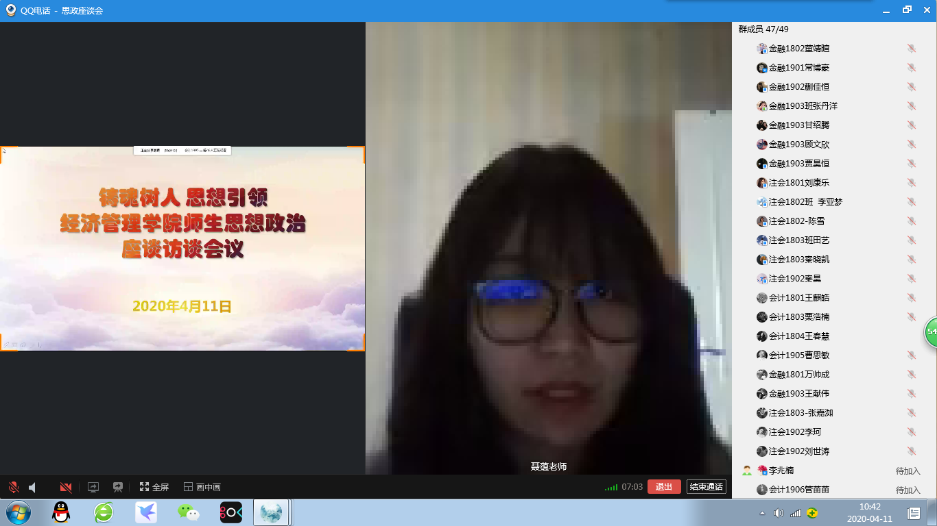 学院党总支副书记李兆楠老师、学院办公室主任张晓凤老师出席此次线上会议,会议由学院团总支书记聂蕴老师主持,与会的还有各年级各班级的学生代表。