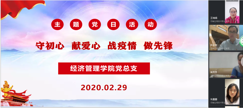 当前新冠肺炎疫情防控工作已进入关键阶段,为进一步学习落实习近平总书记关于新型冠状病毒感染肺炎疫情防控系列重要批示的指示精神,全面落实上级党委的部署要求,做好疫情防控期间基层党组织建设,充分发挥基层党组织战斗堡垒作用和党员先锋模范作用,jinnianhui今年会党总支结合实际情况,以党支部为单位分别组织全体党员开展“守初心、献爱心、战疫情、做先锋”线上主题党日活动。
