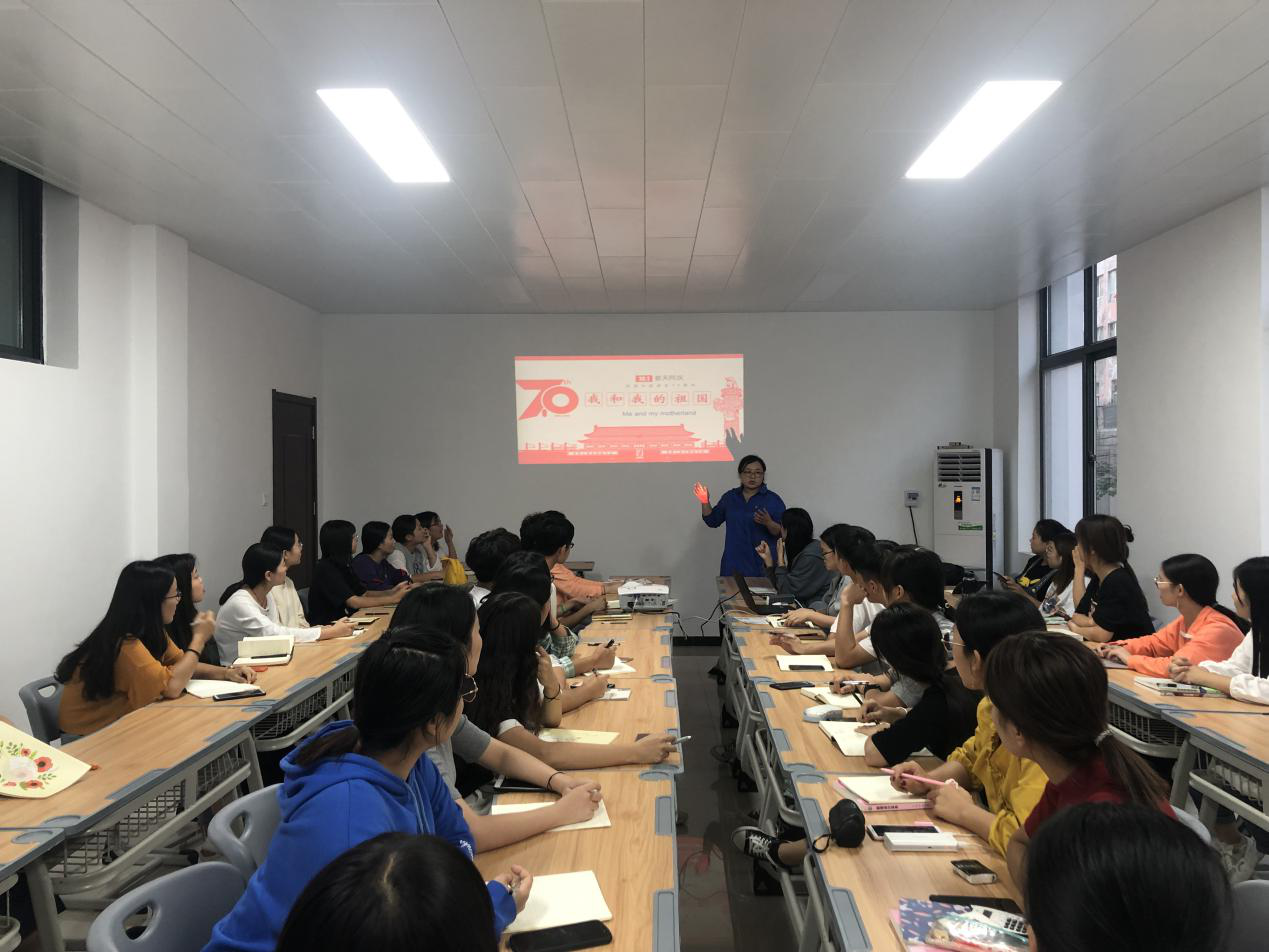为扎实开展“不忘初心、牢记使命”主题教育,进一步加强大学生爱国主义教育,正值新中国成立70周年之际,jinnianhui今年会党总支学生党支部书记李兆楠,为入党积极分子上了一节题为“我爱我的祖国”主题党课。她倡导当代青年要胸怀理想,志存高远,爱国明志,自信前行。党课分为新中国成立,十一国庆历史由来、七十年光辉历程伟大成就、中国进入社会主义新时代、十大中国爱国主义英雄事迹、追梦新时代奋斗新征程五个部分。李书记结合亲身经历,教育年青人不要仰视西方,也不要俯视西方,要客观公正的平视西方;着重介绍和阐释了中国特色社会主义制度的优越性;作为一个中国人,我们应该自信起来,看到我们国家的繁荣,看到国家的实力,相信我们的国家将日益强大,未来更加美好辉煌。