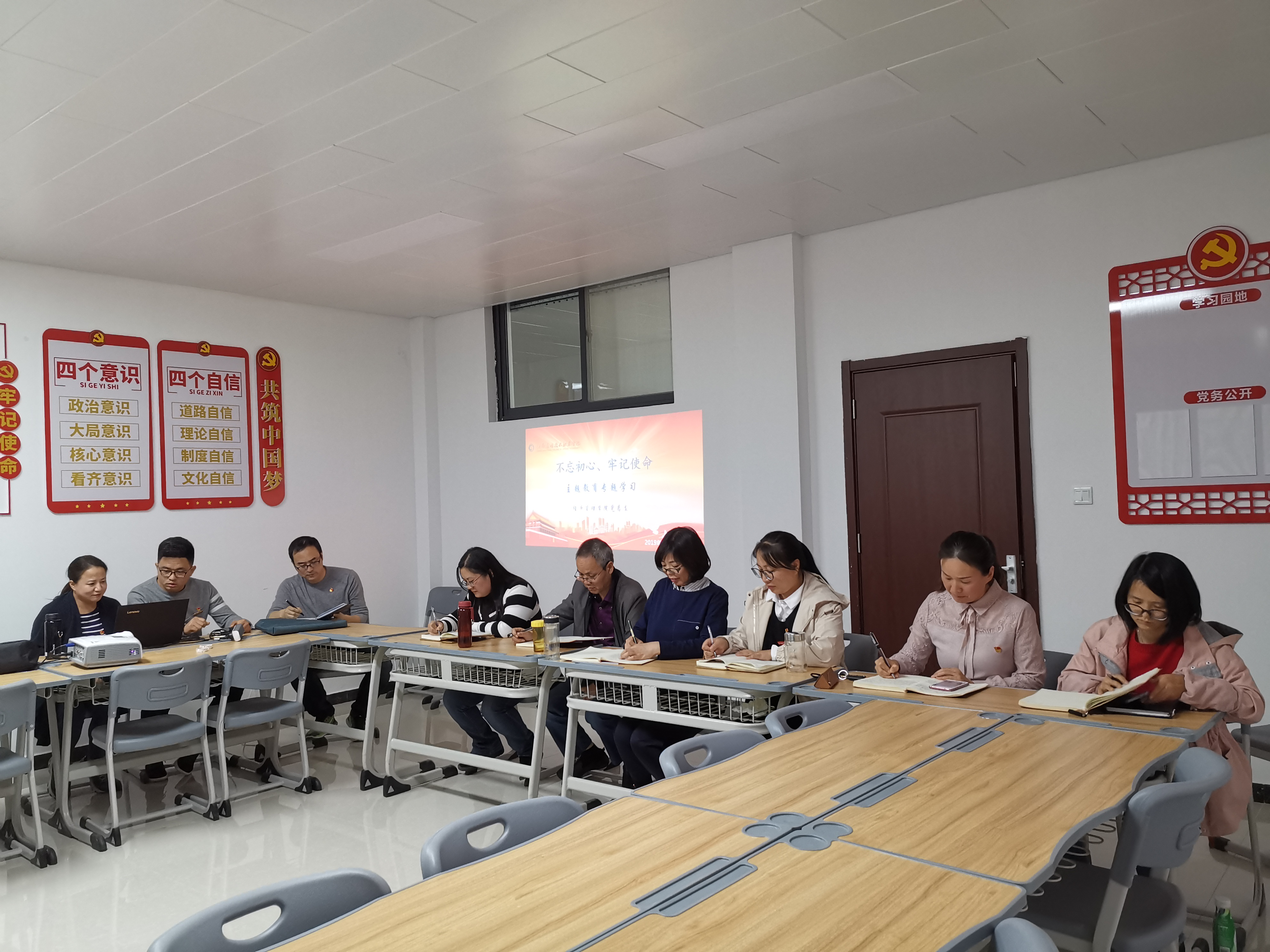 2019年10月29日下午,jinnianhui今年会党总支在办公楼505进行“不忘初心、牢记使命”主题教育第六专题“强化党的政治纪律和政治规矩”和第七专题“加强党性修养”的集中学习研讨,学习由教工支部书记张召哲老师主持,全体党员教师参与本次学习研讨。