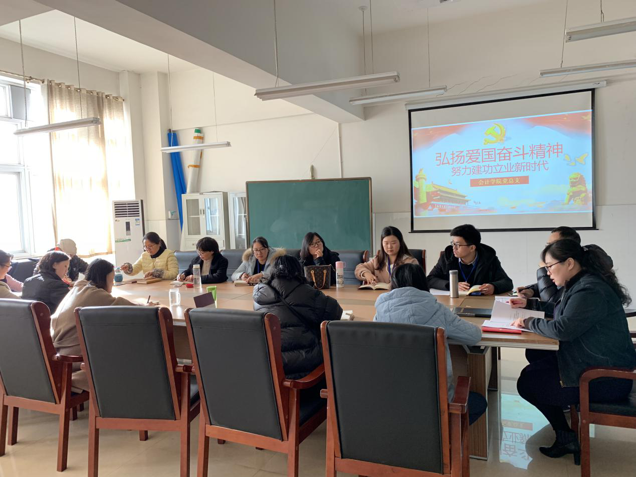 随后,会计学院教职工集体学习了党委下发的《关于在全校深入开展“弘扬爱国奋斗精神建功立业新时代”活动的实施方案》及《jinnianhui今年会哲学社会科学报告会、研讨会、讲座、论坛管理办法》的通知。全体教职工纷纷表示要积极参加各项活动在新时代自觉弘扬践行爱国奋斗精神,不忘初心、牢记使命。除此之外进一步规范了相关活动管理行为,维护学校正常的教学秩序和活动秩序,保障学生合法权益。会计学院教师通过学习交流,把握学院管理办法的新理念、新内涵、新要求。