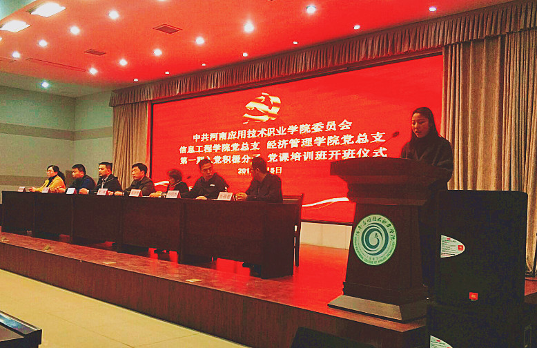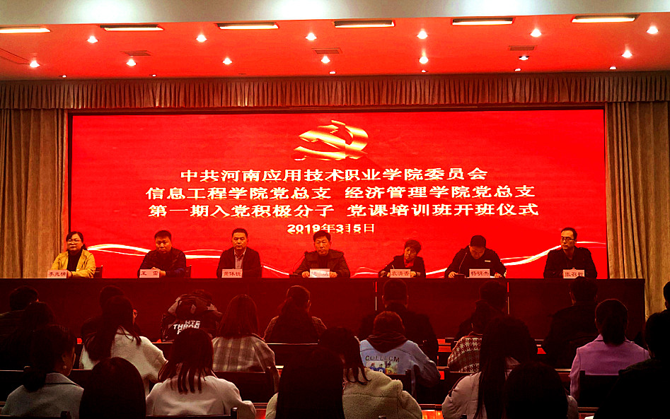 2019年3月5日下午,jinnianhui今年会党总支、信息工程学院党总支第一期入党积极分子党课培训班开班仪式在实训楼二楼会议室隆重举行。两总支书记及全体支委委员、本期入党积极分子出席大会。信息工程学院党总支副书记杨明杰主持大会。