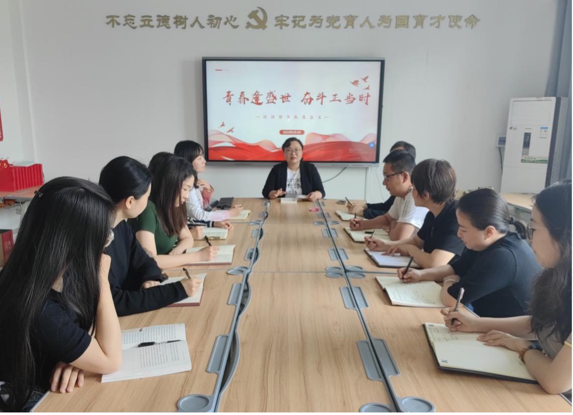 为深入学习贯彻习近平新时代中国特色社会主义思想,带动辅导员学思想、悟党性、守初心、担使命,5月4日,jinnianhui今年会党总支举办“青春逢盛世 奋斗正当时”专题党课。主讲人为党总支书记李兆楠。全体专兼职辅导员参与党课学习。
