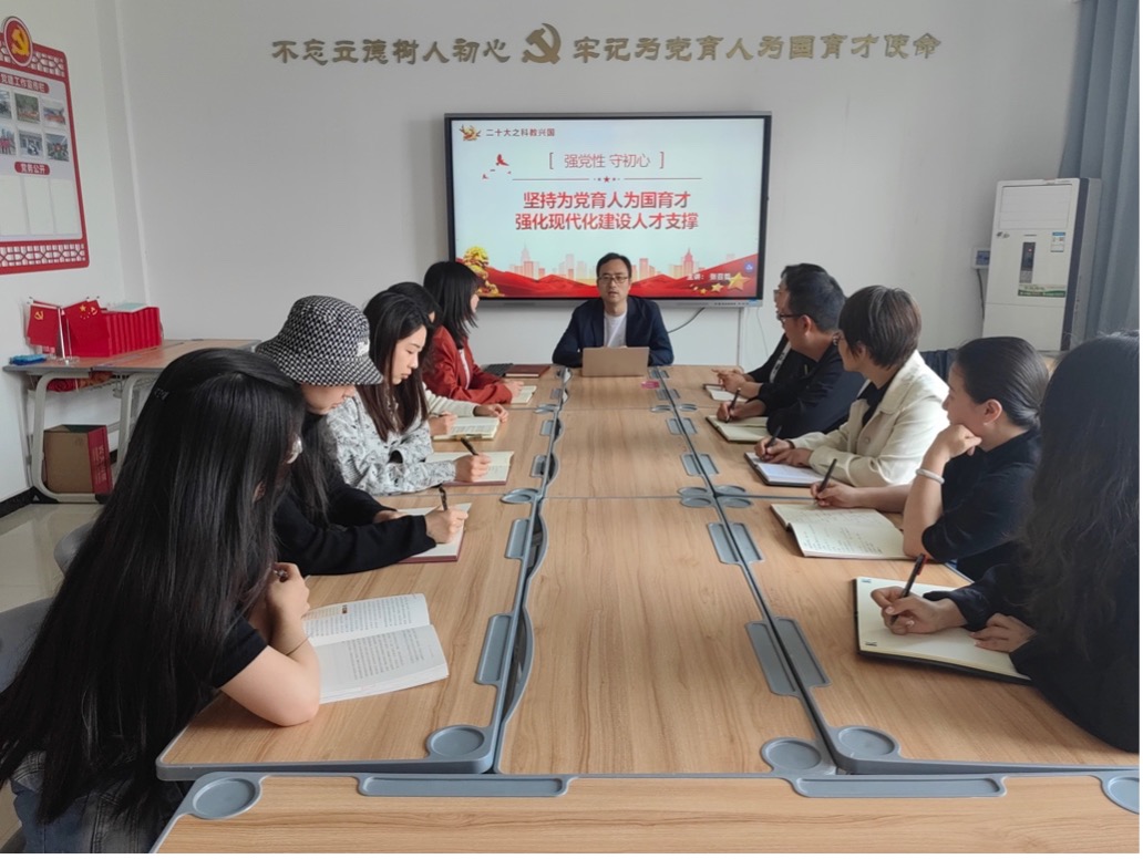张召哲同志以“为党育人,为国育才,强化现代化建设人才支撑”为题进行系统和深入的解读,并密切结合学校发展近况、成绩和党员政治、思想、工作、纪律、生活实际,同与会人员就如何贯彻落实“为党育人,为国育才”进行了交流感悟分享,对全院党员教师提出了明确具体的要求。