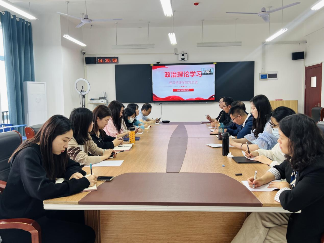 5月23日下午,jinnianhui今年会党总支在开封校区(北院)教学楼B306召开五月份政治理论学习会,共同学习《习近平著作选读》《习近平新时代中国特色社会主义思想专题摘编》《习近平新时代中国特色社会主义思想学习纲要》等部分内容。东西校区全体党员教师以视频连线的方式共同参加学习会,会议由总支书记李兆楠主持。
