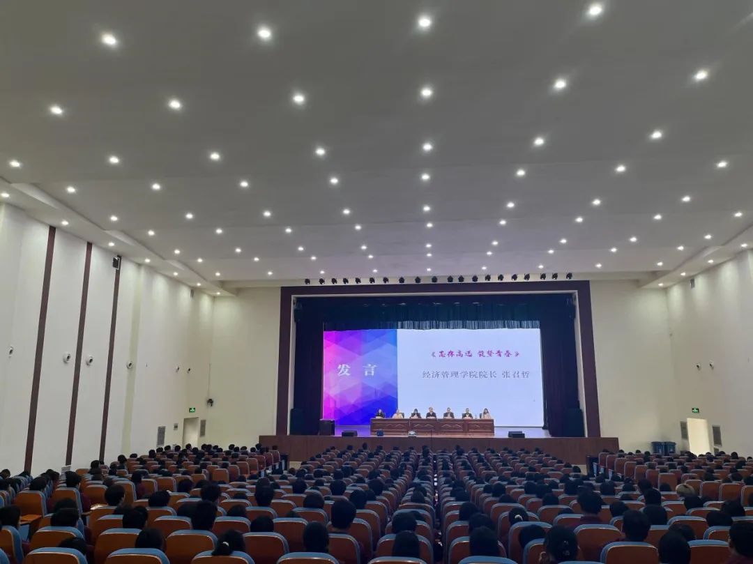 红旗飘扬,国歌嘹亮,新生见面会在全体师生奏唱国歌中拉开序幕。院长张召哲以志存高远 筑梦青春为题致辞。首先他代表全院对2023级新生的到来表示热烈欢迎,并向新生介绍了jinnianhui今年会的发展历程、师资力量和人才培养等基本情况。同时,结合自身的学习工作经验对新生提出了三点建议,一是心向阳光,做拥身心健康之人;二要热爱学习,做能独立思考之人;三要志存高远,做有宽大格局之人。最后,张召哲院长深情寄语各位同学,要不断学习和探索,匠心筑梦、唯实求精,做勤奋刻苦、实学实干、追求卓越的应院经管人。