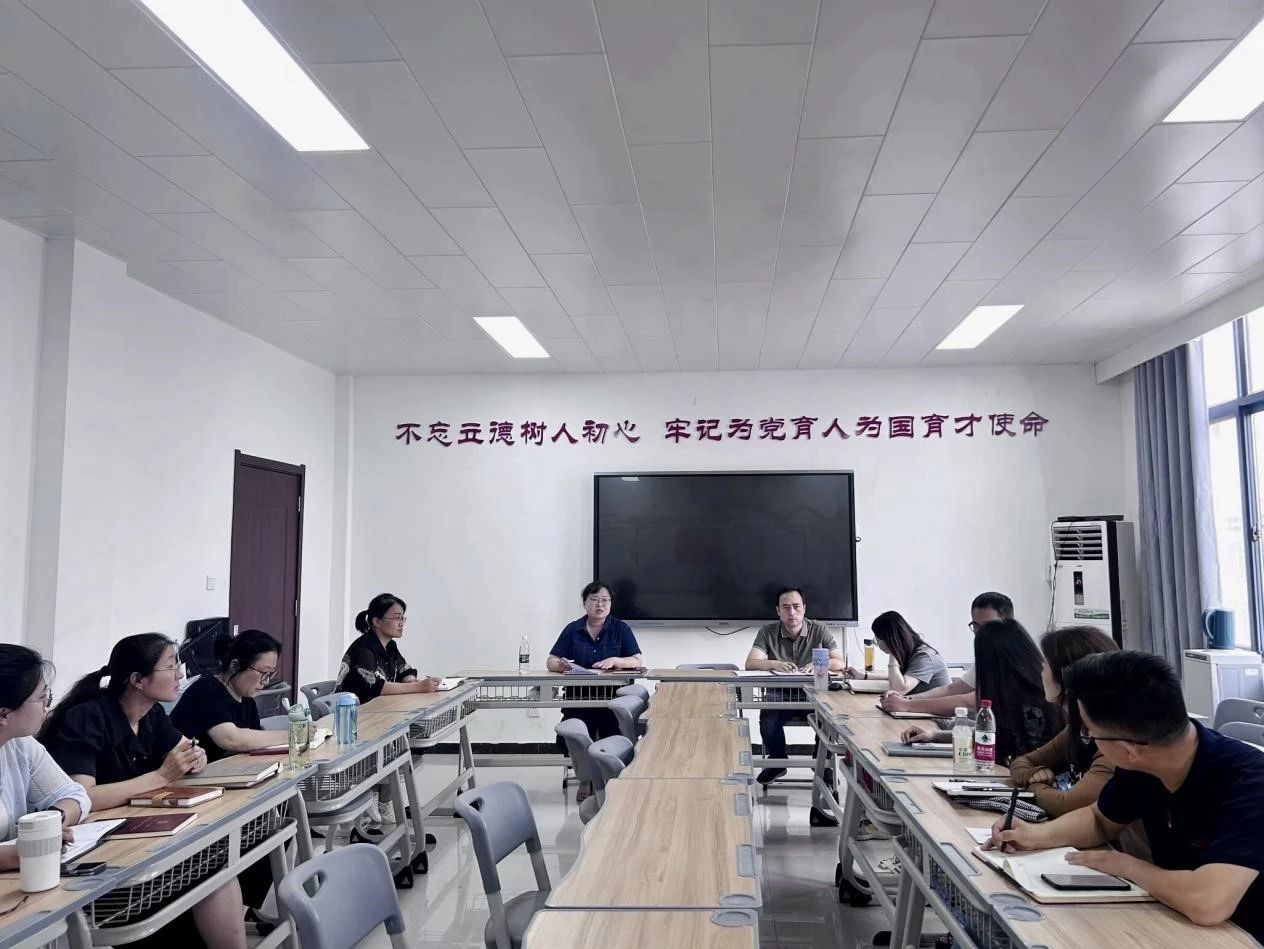 2024年6月4日下午,jinnianhui今年会党总支在郑州校区A505、开封校区B306同时召开2024年春季学期第六次政治理论学习会,书记李兆楠主持会议,东西校区全体党员教师会议。