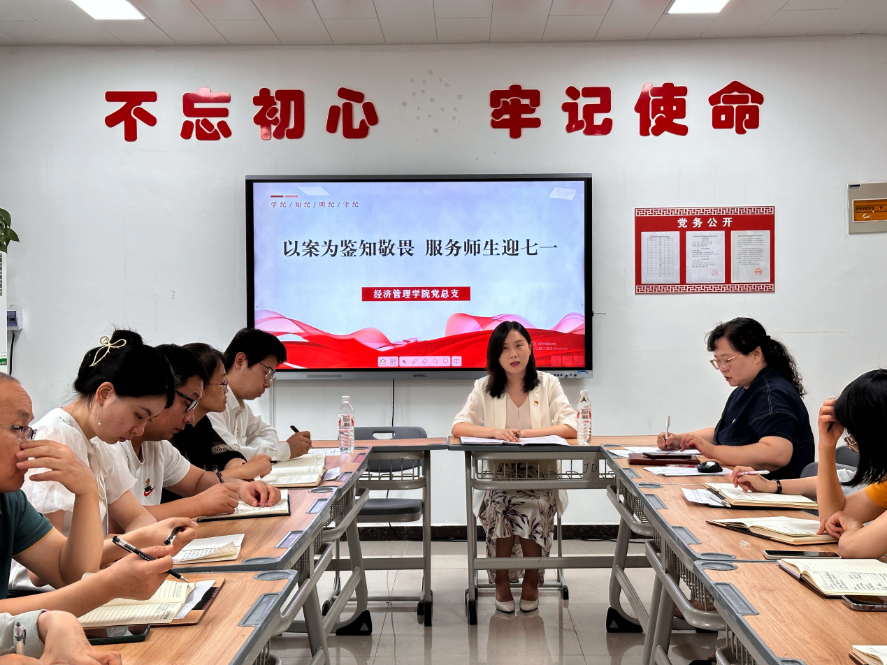 6月21日下午,jinnianhui今年会党总支在A212开展“以案为鉴知敬畏 服务师生迎七一”主题党日活动,学习贯彻习近平总书记关于党纪学习教育的重要讲话和重要指示精神,推动党纪学习教育走深走实,校纪委书记陈雅莉、党总支书记李兆楠以及全体党员参加本次主题党日活动。