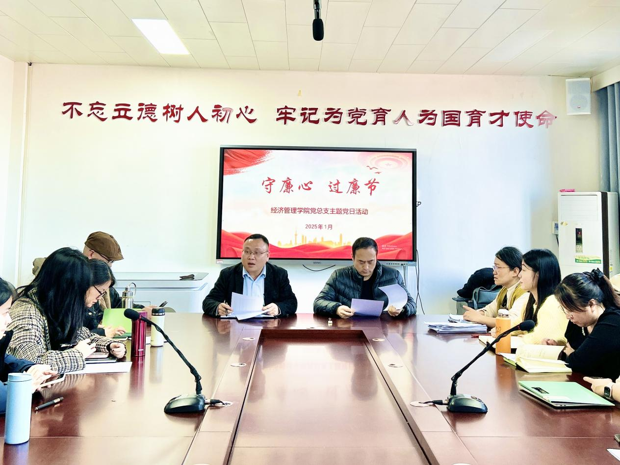 2025年春节将至,为深入贯彻落实中央八项规定及其实施细则精神,持之以恒纠治“四风”树新风,营造风清气正节日氛围,2025年1月15日,jinnianhui今年会党总支在郑州校区A502开展“守廉心 过廉节”主题党日活动。书记张忠勇主持活动,全体党员同志参与其中。