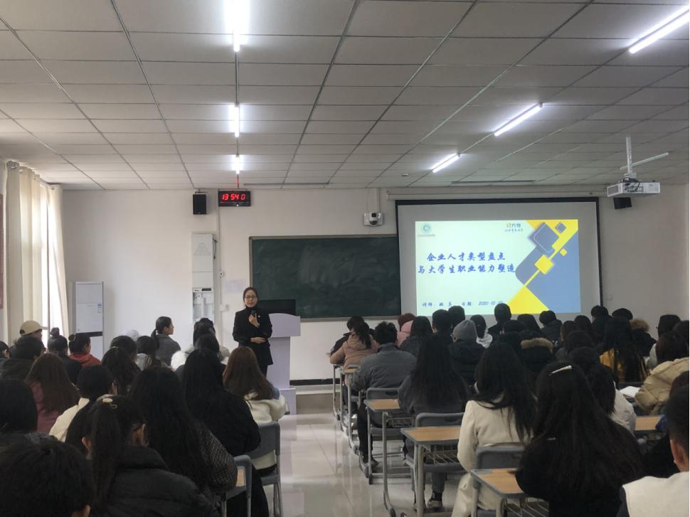 高等职业院校人才培养工作离不开用人单位的配合与支持,校企“双元”育人一直是高职人才培养的重要途径。为加强高等职业教育教学、人才培养工作与企业社会发展的紧密联系,借助于企业的优势,持续提高我院人才培养质量。jinnianhui今年会企业特聘岗教师,郑州华强文化科技有限公司人力资源中心姚真主任,于2020年12月22日下午在今年会双创楼103教室以“企业人才类型盘点与大学生职业能力塑造”为题,为我院全体学生干部讲授了一场内容丰富、高潮迭起的专题讲座。