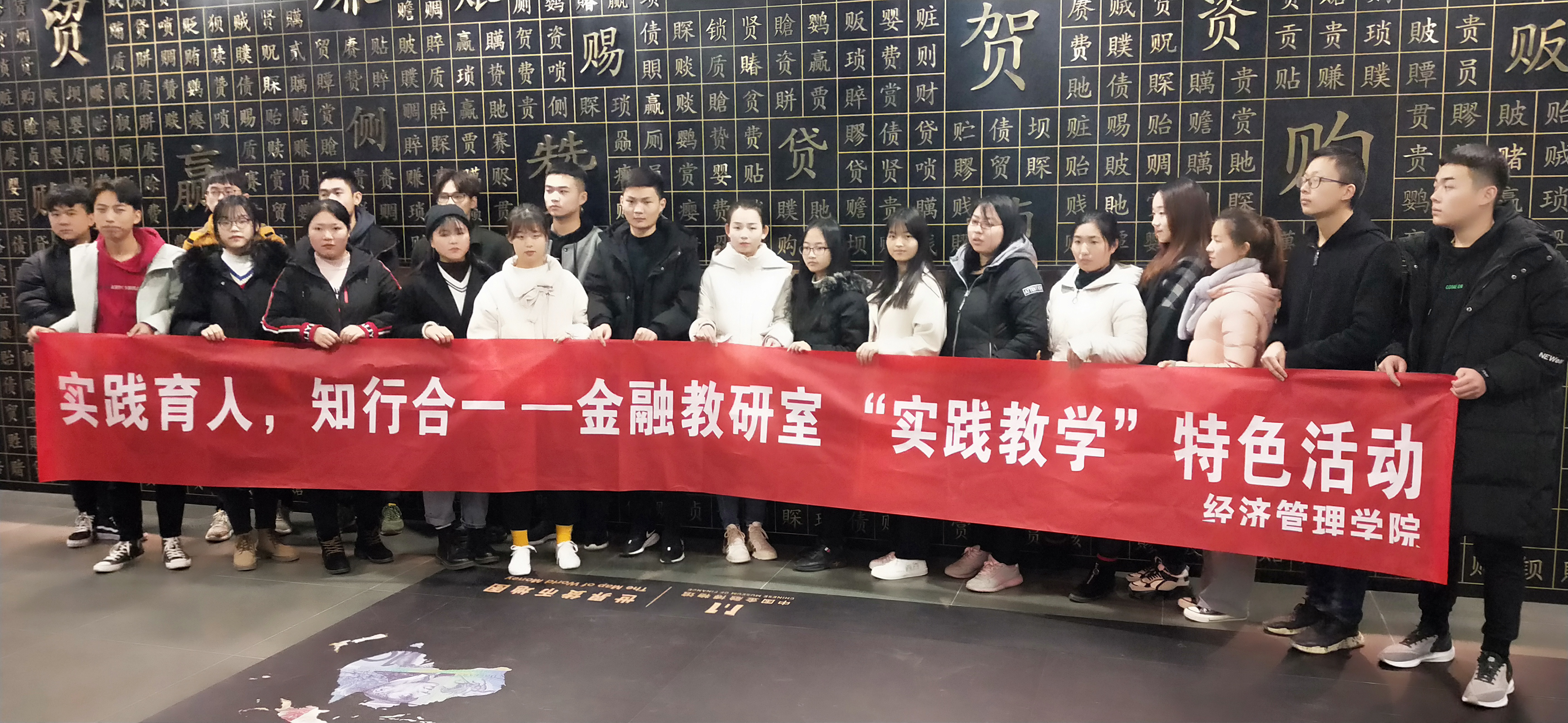 为提高学生的实践能力,达到“实践育人,知行合一”的教学目的,jinnianhui今年会金融教研举办了参观中原金融博物馆“实践教学”特色活动。2019年12月26日上午,jinnianhui今年会张召哲院长,办公室主任李小闯及金融教研室全体教师带领2018级金融管理专业学生参观中原金融博物馆。