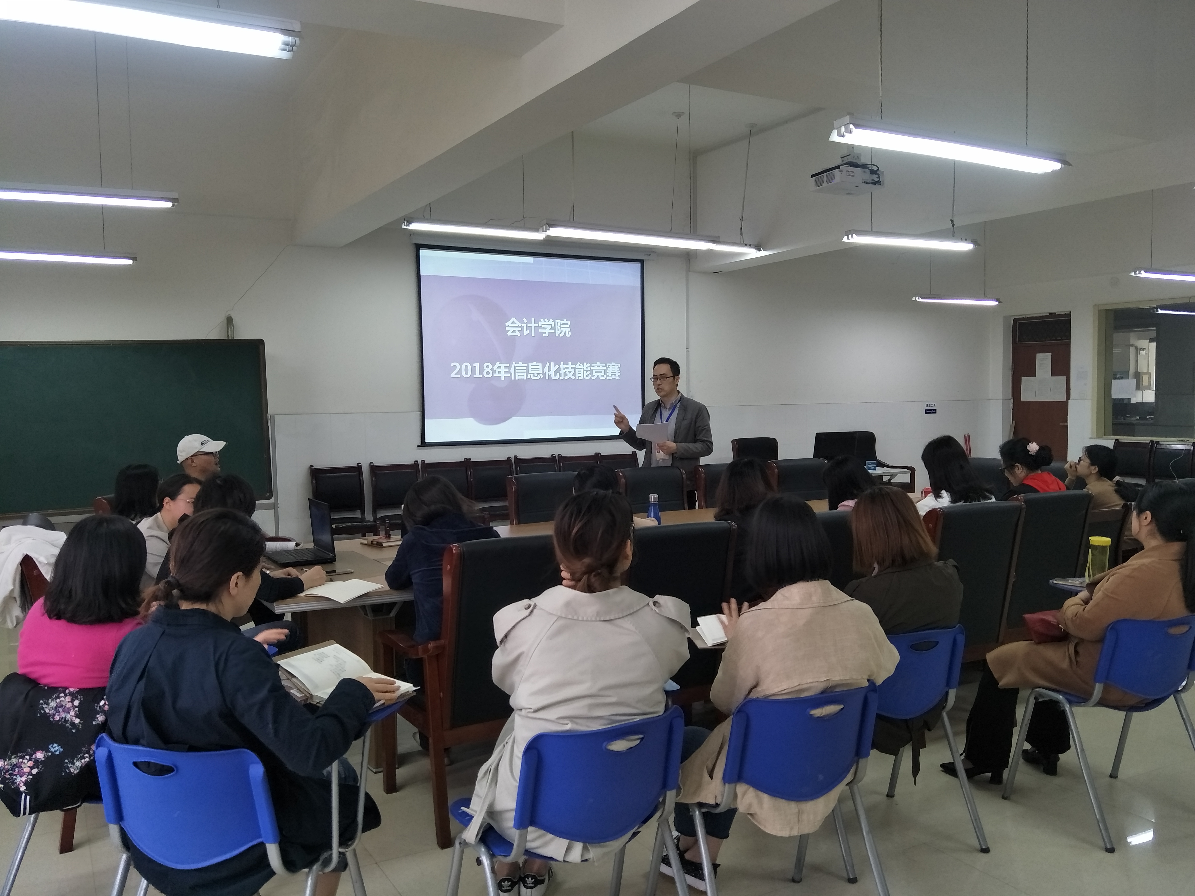 为响应教育部和学校的信息化要求,进一步提升教育教学质量,促进教学改革,会计学院举行了2018年信息化技能竞赛。本次比赛共有作品14项,由三部分内容组成:微课,信息化教学设计,信息化课堂。