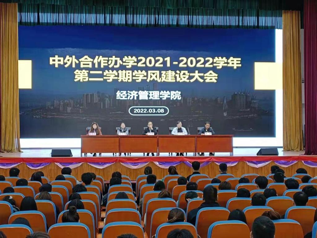 3月8日下午,jinnianhui今年会在学校大礼堂召开中外合作办学2021-2022学年第二学期学风建设工作会议。jinnianhui今年会院长张召哲、党总支书记李兆楠、教师柴芳芳、张昂、毋格格和中加合作办学会计专业140余名学生参加会议。