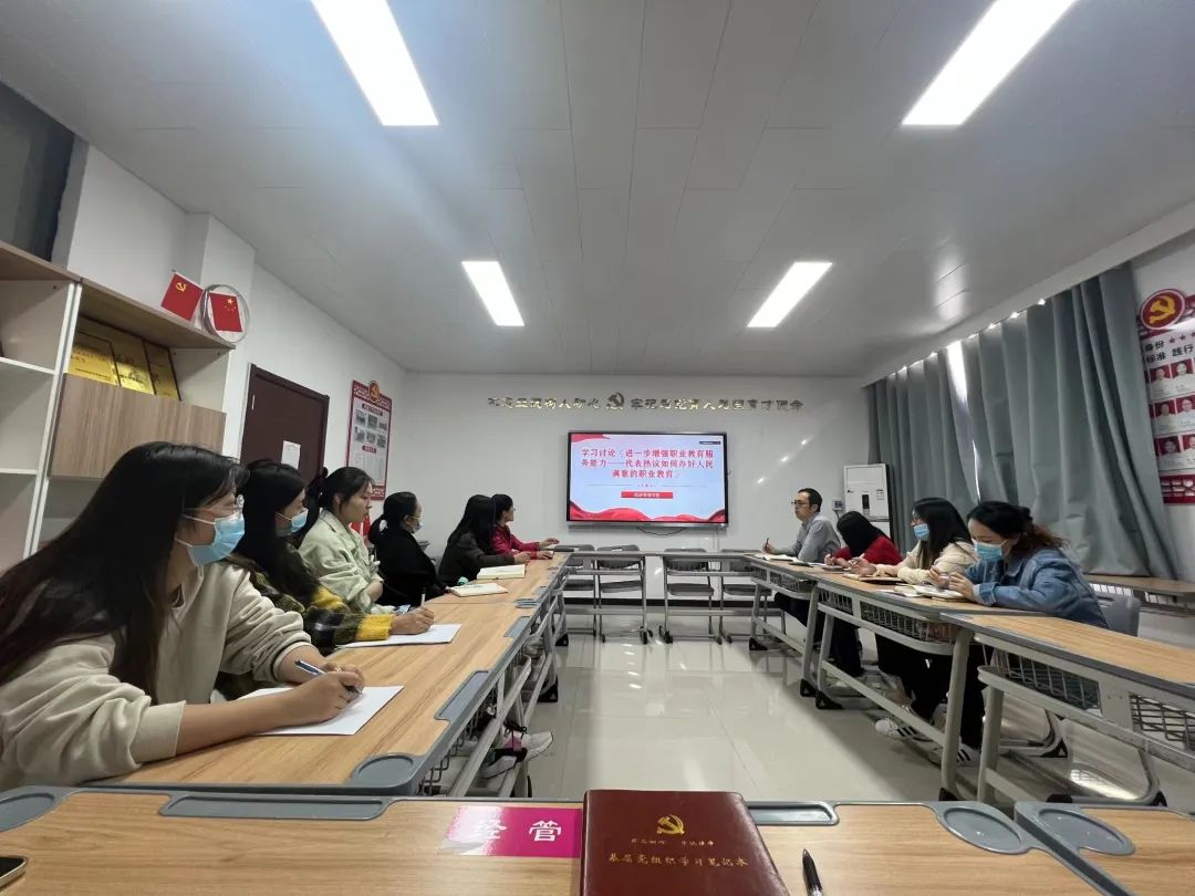 2022年10月25日下午,jinnianhui今年会全体专兼职教师在郑州校区A505、开封校区B306同步进行业务理论学习会,集中学习《职业教育专业简介(2022年修订)》、《中国教育报》2022年10月22日第2版《进一步增强职业教育服务能力——代表热议如何办好人民满意的职业教育》、《教育部公开曝光第九批7起违反教师职业行为十项准则典型案例》、《教育部公开曝光第十批7起违反教师职业行为十项准则典型案例》。会议由院长张召哲主持,全体专兼职教师参加会议。