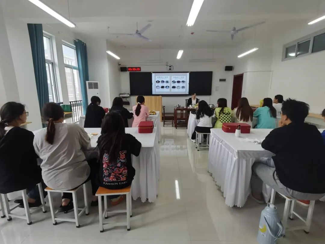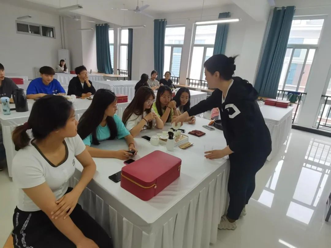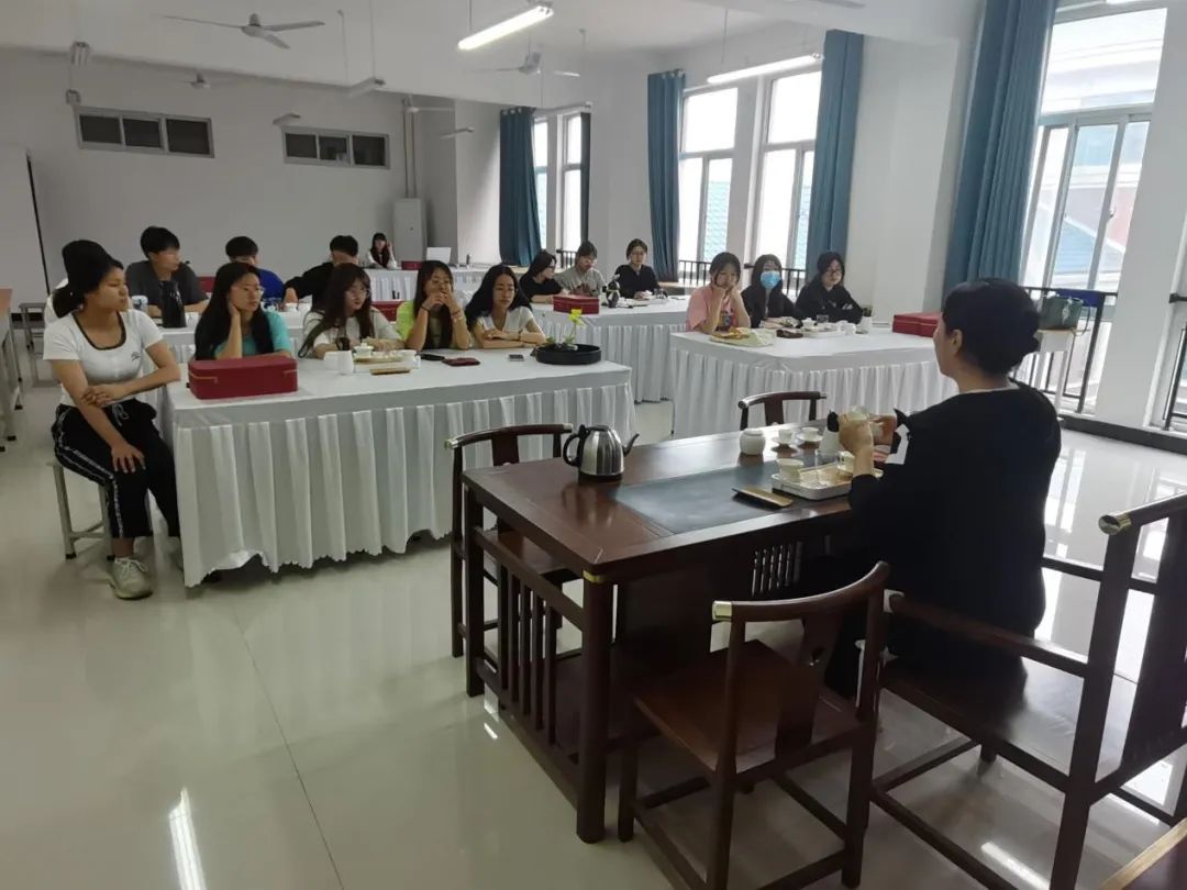 实践教学是技术技能型人才培养的重要环节,也是作为辅助课堂教学的有效教学形式。为进一步推动中华优秀传统文化与专业课融合,推进实践课程教学模式改革创新。5月30日,jinnianhui今年会特邀开封市语哲茶文化博物馆馆长刘青女士为我院2021级酒店管理专业学生开展了主题为《茶文化与茶艺基础》实践课程。