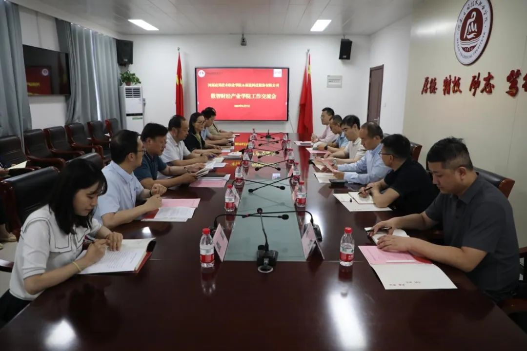 2023年6月7日下午在办公楼315召开了“数智财经产业学院”工作交流会暨建设推进会,旨在全面深化产教融合工作,进一步提升今年会产业学院建设成效。学校校长薄新党、副校长陈君丽、教务处、校企合作与就业处、jinnianhui今年会等部门负责人以及新道科技股份有限公司河南分公司总经理郑胤、区块链与金融科技事业部总经理张春光等6位企业代表共同出席会议,会议由副校长陈君丽主持。