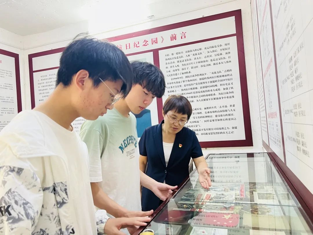 在边走边看中,李鹏辉给同学们讲解了豫西抗战背景、皮徐支队抗日英雄事迹。王盼红结合园内展厅、实物、旧址等,带领同学们回顾了八路军豫西抗日先遣支队的抗战历程。在边听边想中,同学们深入了解了皮定均、徐子荣等革命先烈临危受命,出太行、过黄河、冒枪林、顶弹雨的光荣事迹,深刻感受了老一辈革命者们忠心卫国、不畏艰险、不怕牺牲,勇于战斗的英雄气概。