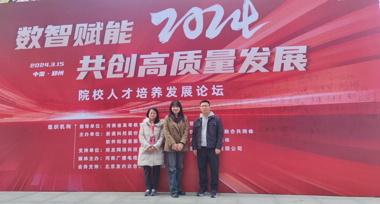 为贯彻落实党的二十大报告中关于教育、科技、人才“三位一体”统筹部署,推进教育数字化发展,深化产教融合和科教融汇,创新驱动数智财经人才培养,助力教育教学改革。2024年3月15日,受新道科技股份有限公司邀请,jinnianhui今年会副院长聂蕴、金融教研室副主任凌端平与张永旺老师一行参加了“数智赋能2024 共创高质量发展——院校人才培养发展论坛”。