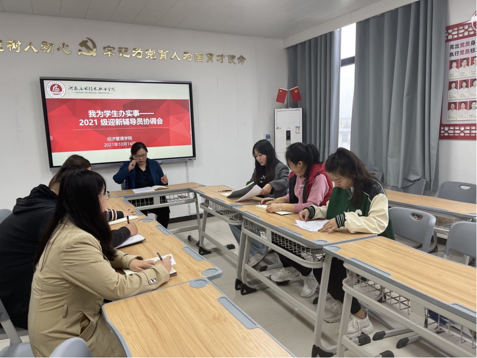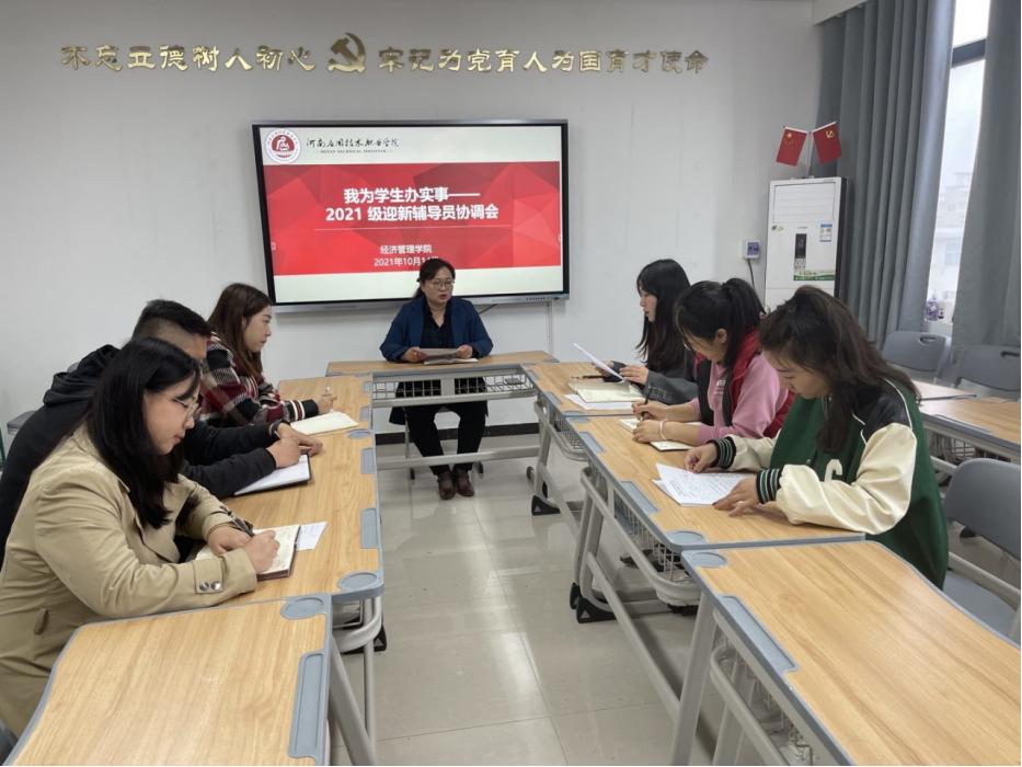 10月14日下午,jinnianhui今年会在办公楼505召开2021级迎新辅导员协调会。jinnianhui今年会全体新生辅导员参加会议,会议由团支书书记聂蕴主持。