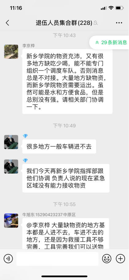 金融1901班王一鸣,原退伍军人,集合退伍战友自发参与到郑州某救援队,第一时间奔赴新乡卫辉市参与救援服务。赶到当天下午5点至次日6点多,一直泡在水中参与救援工作,转运伤员、搬防汛带、抗堤、搜寻失踪人员等,哪里有需要就在哪里。(因长期在水中浸泡抗灾,未能带手机拍照)