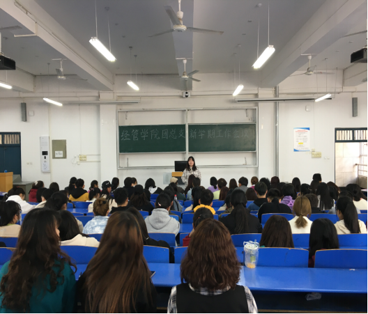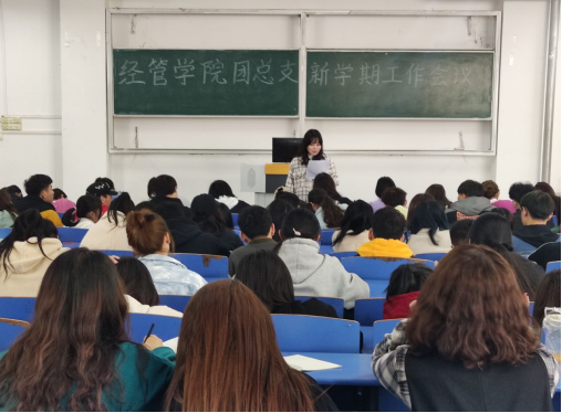“励精图治,争先创优”,为保证新学期各项工作尽快步入正轨,更加有针对性、科学合理地做好新学期学生管理各项工作,提升学生干部服务全院学生能力,发挥学生干部在学校与学生、老师与学生间的桥梁纽带作用。3月4日中午,经管学院在2号教学楼B101教室召开了新学期第一次学生会干部会议。团总支书记聂蕴老师及全体学生干部参加了此次会议。