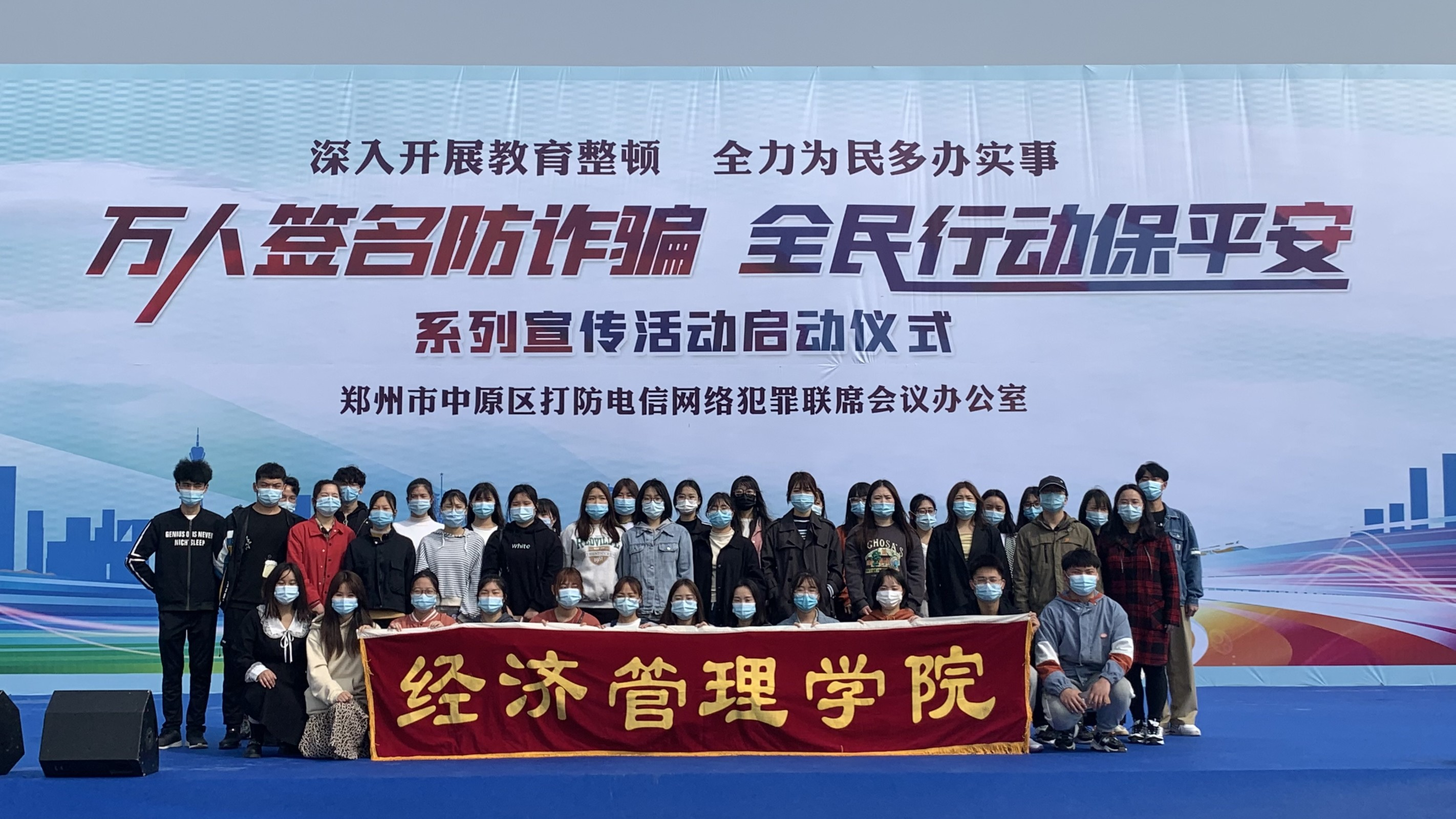 为进一步提高今年会学生对电信网络诈骗犯罪的认知,增强防范电信网络诈骗犯罪的能力,形成强大的打击电信网络诈骗犯罪的力量,更好地保护广大学生的财产安全。3月27日上午,在校团委的统一安排下,我院组织部分师生前往郑州市奥体中心,参加“万人签名防诈骗,全民行动保平安”系列宣传活动启动仪式。