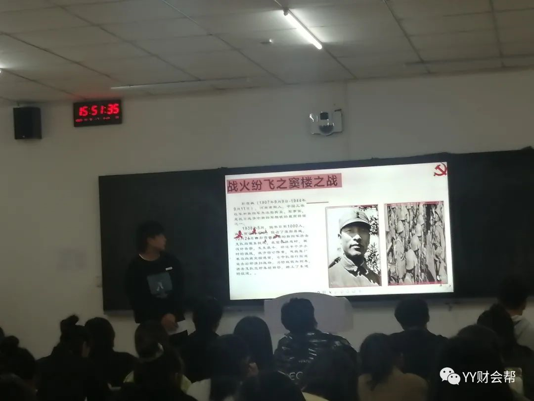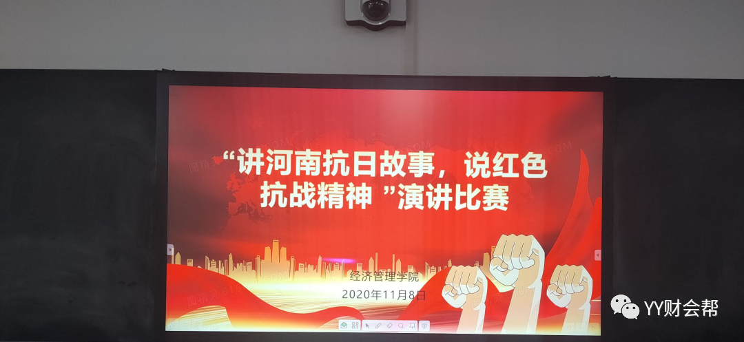 为深刻缅怀抗战英烈的光辉业绩,弘扬爱国主义精神和民族精神,深入推进社会主义核心价值观建设,激发学生奋发成才、报效祖国的热情。jinnianhui今年会于11月8日14时在双创楼202教室举行“讲河南抗战故事 说红色抗战精神”主题演讲选拔赛,同学们充分准备,慷慨有力的演讲,展示了中华民族的民族精神。其中1号选手的演讲《红军永驻》带领大家走进河南抗战的故事情节中,他们情感充足,慷慨激昂,声入人心。23号选手以真挚的情感带领同学们共同追忆了那段全民族奋起抗争的峥嵘岁月,希望同学们铭记历史、勇于担当,以满腔热血肩负起祖国的复兴重任。