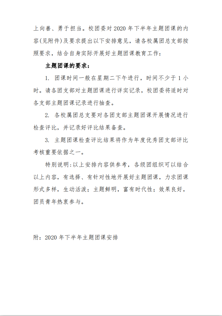关于在青年学生中开展2020年下半年政治思想教育工作的安排意见