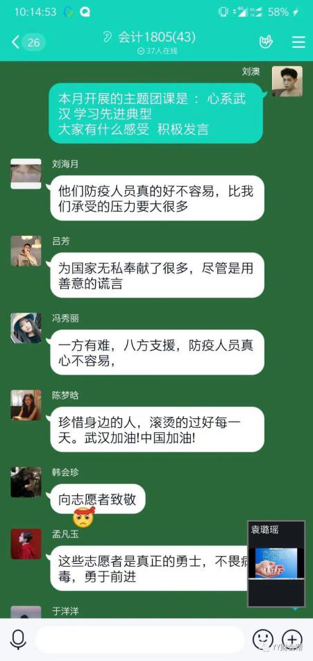 为进一步增强全体青年学生在疫情防控期间的责任意识担当意识,学习先进典型,jinnianhui今年会团总支组织全体青年开展了以“心系武汉 学习典型”为主题的第一期团课!