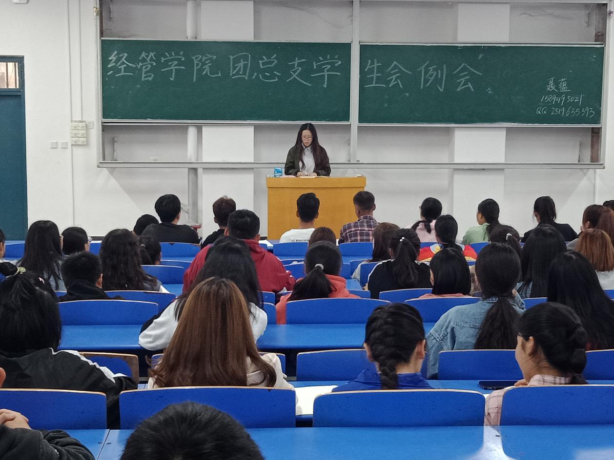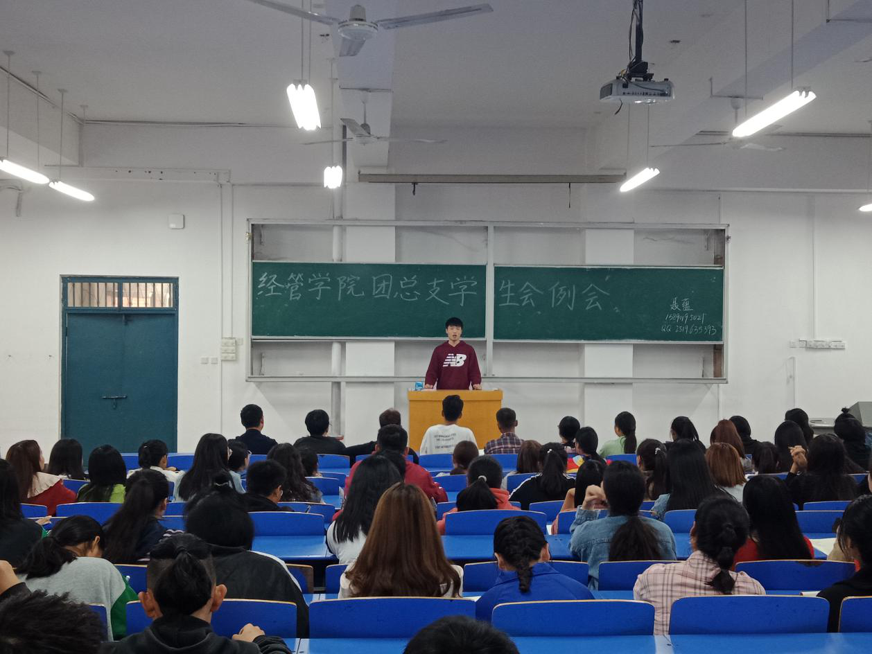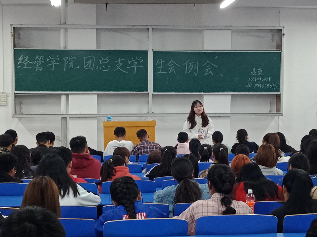 为了让2019级学生干部了解jinnianhui今年会团总支学生会的功能与性质,更好的部署本学期各项学生工作及活动的开展。jinnianhui今年会团总支学生会于2019年10月23日中午在教学楼102教室举行团总支学生会会议。学院团总支书记聂蕴老师、学生会主席团、各部负责人及2019级学生干部预备营成员出席参加此次会议。