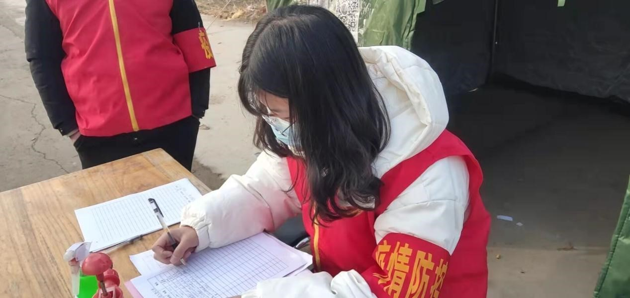 每天,她都会带着扩音器和体温枪站在小区门口值勤点对来往人员检测体温,对外省市人员进行行踪登记,并督促他们居家隔离14天。每日工作完成后她会对一天的工作进行梳理总结,并向社区进行汇报。通过志愿服务,她始终认为能够服务人民、服务社会,是她人生经历的财富,更是她人生价值的直接体现。