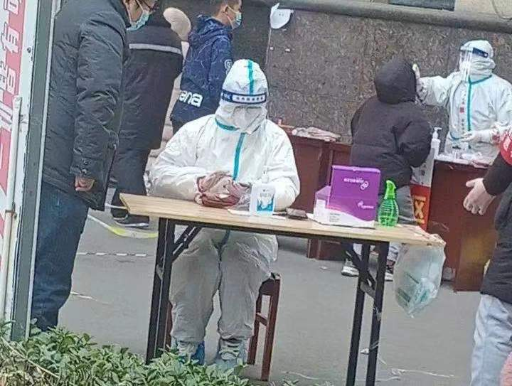 1月4日雨雪后气温骤降。5日晚上的露天核酸检测寒风凛冽,她作为志愿者协助医护人员进行现场扫码、登记预约信息、维持现场秩序,帮助行动不便的老人登记信息,努力提升核酸检测效率。随后几天的全员核酸检测,她每天都会早早的来到监测点,拉好隔离线、整理桌椅,维持秩序,结束后对检测点进行消毒和整理,用自己微薄的力量温暖着寒冷的冬季。