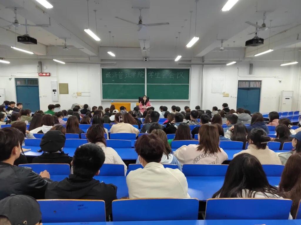 为进一步加强团学干部队伍建设,提高团学工作服务水平,明确新学期工作方向,2月28日晚,jinnianhui今年会团总支学生会在教学楼101召开了“踔厉奋进聚力前行”为主题的2022年新学期学生干部大会。会议由团总支书记聂蕴老师主持,学院全体团学干部参加会议。