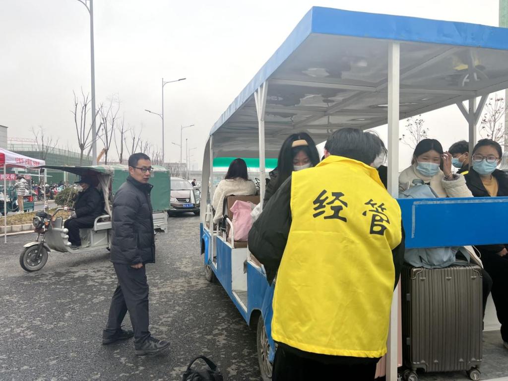 新绿渐露,万物复苏。2月11日,jinnianhui今年会2022级学生背起行囊、如期而至。副书记王盼红、学工办主任张昂、2022级辅导员以及学院学生会志愿者早早各就各位,守候大家归来。