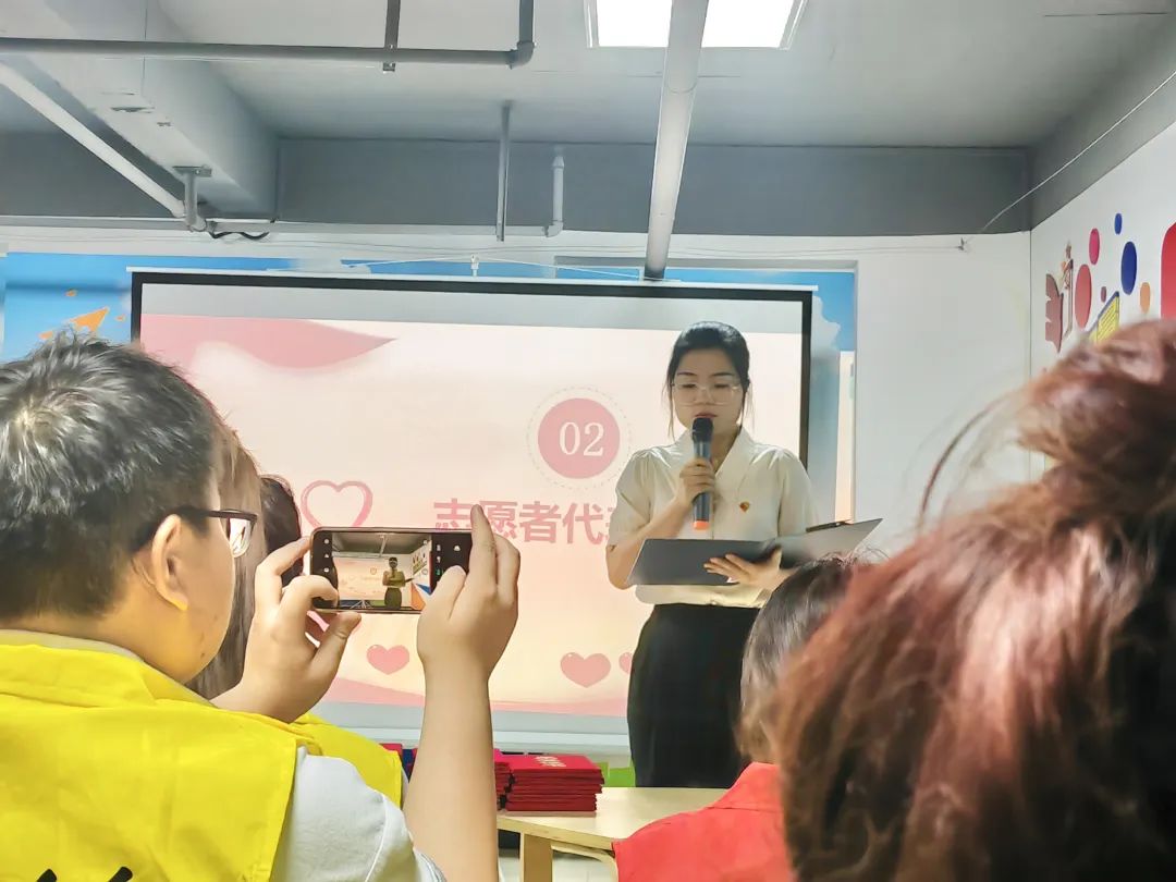 5月28日,jinnianhui今年会团总支带队青年志愿者前往金海社区党群服务中心参加志愿者表彰大会。本次大会由淮河路街道办事处、青益社工联合举办,旨在表彰2023年上半年社会志愿服务中表现突出的青年志愿者。23名青年志愿者参加表彰大会,青益社工郝红花老师主持本次表彰大会。