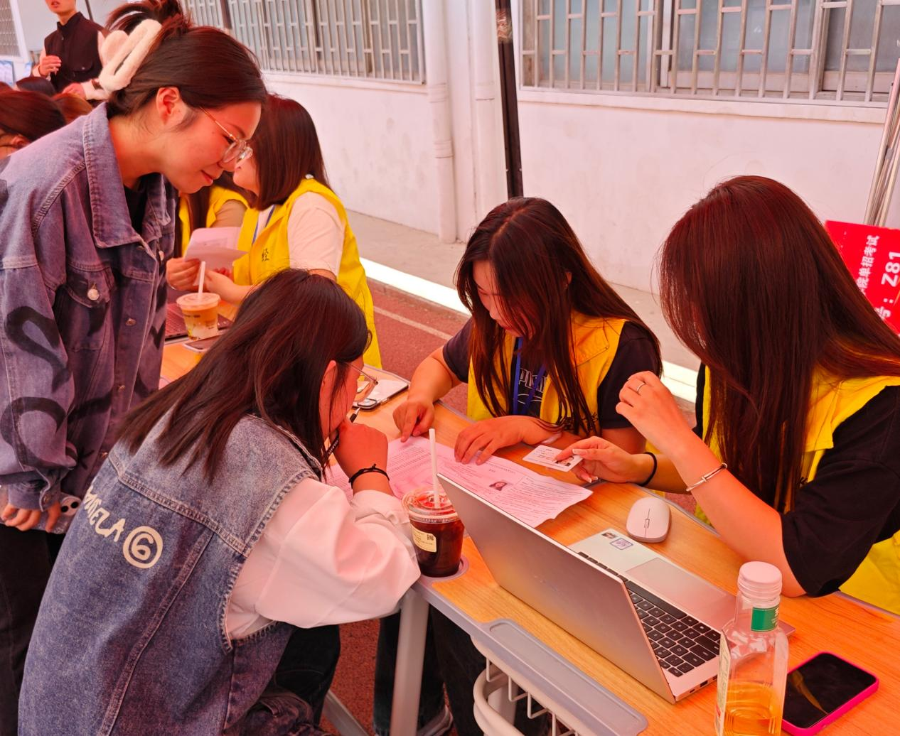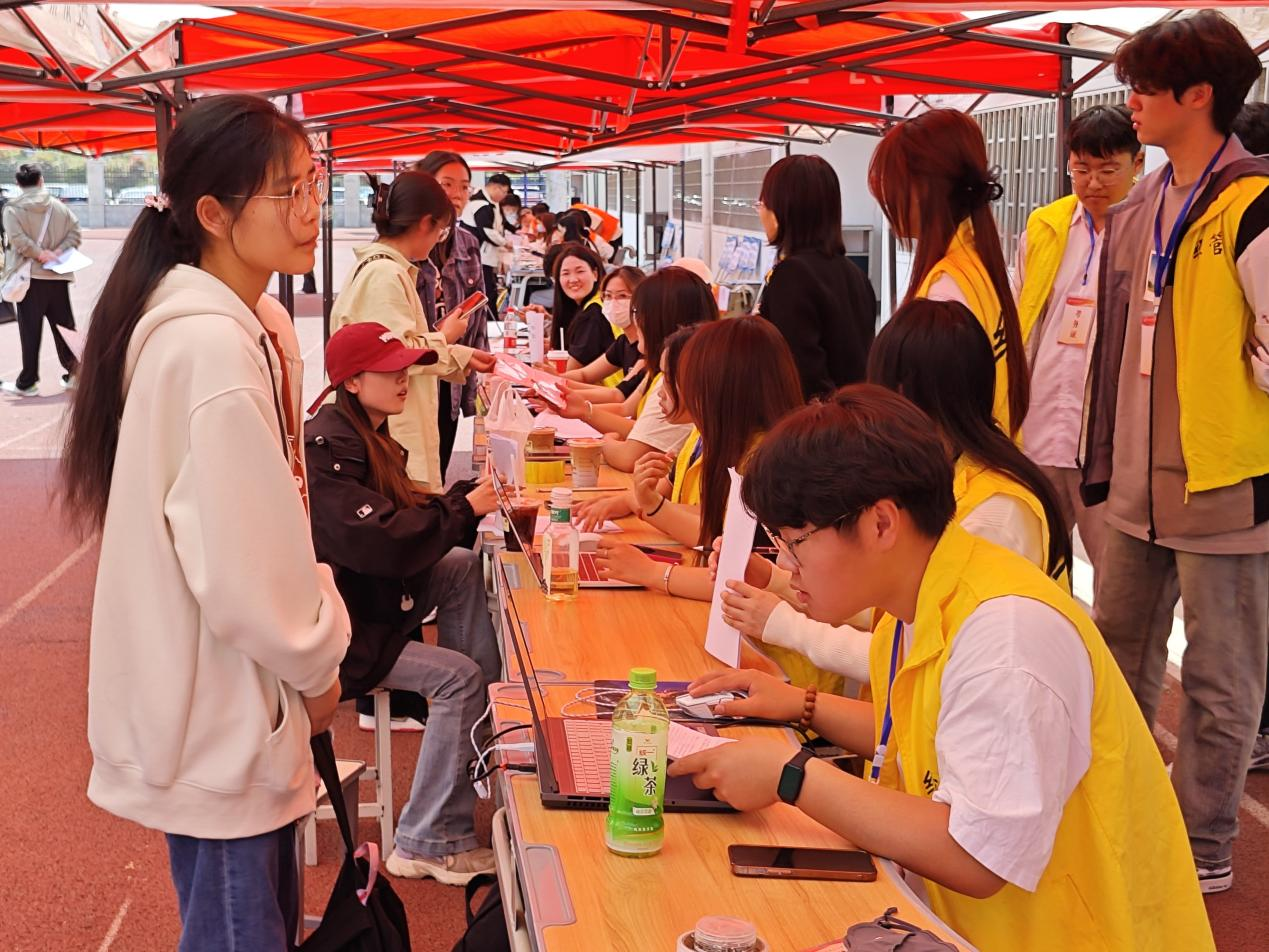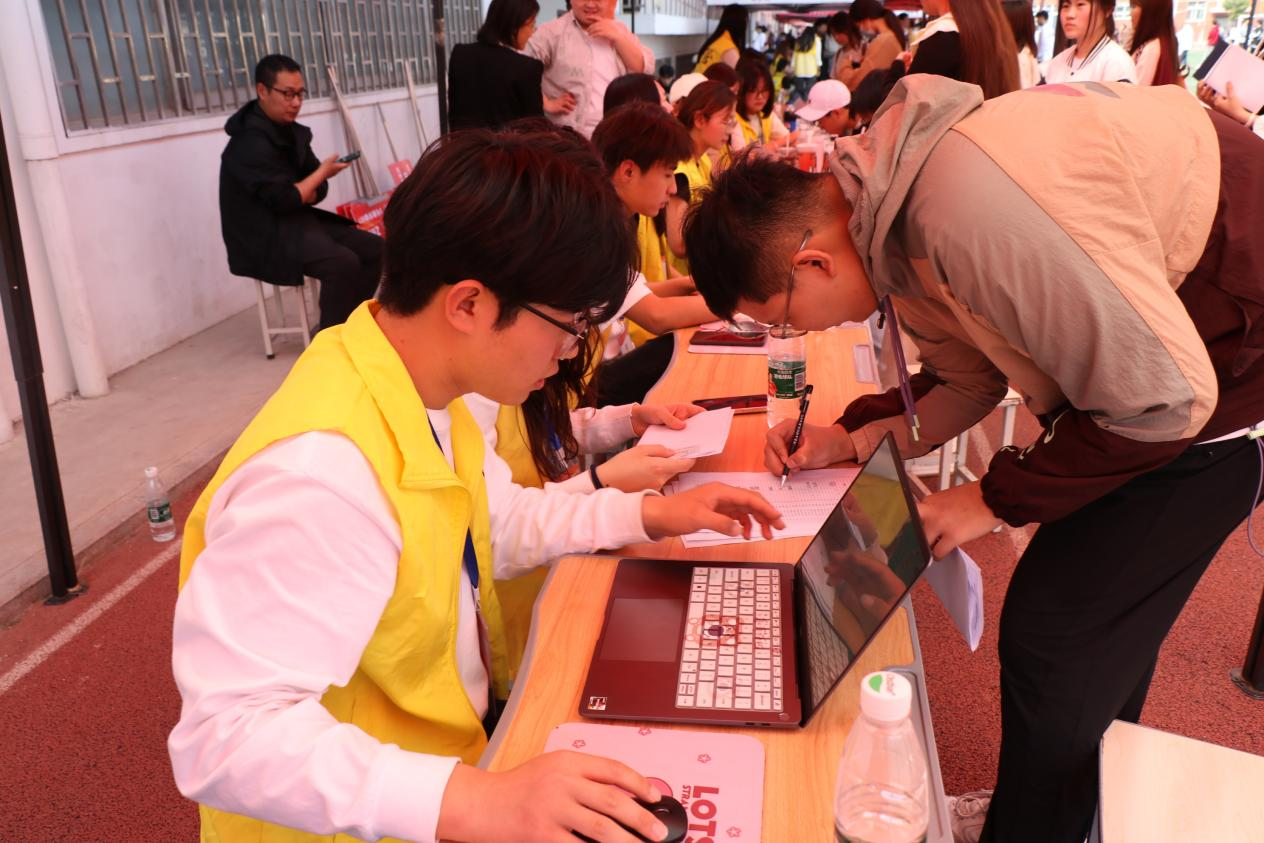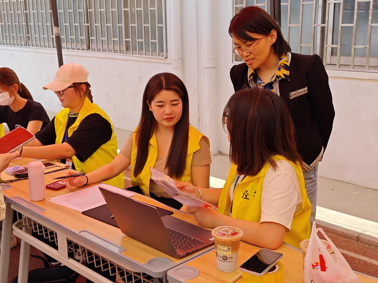 在现场审核环节,工作人员对考生身份证原件、复印件、准考证、加分证明等材料进行一一核对。青年志愿者为考生进行答疑解惑。