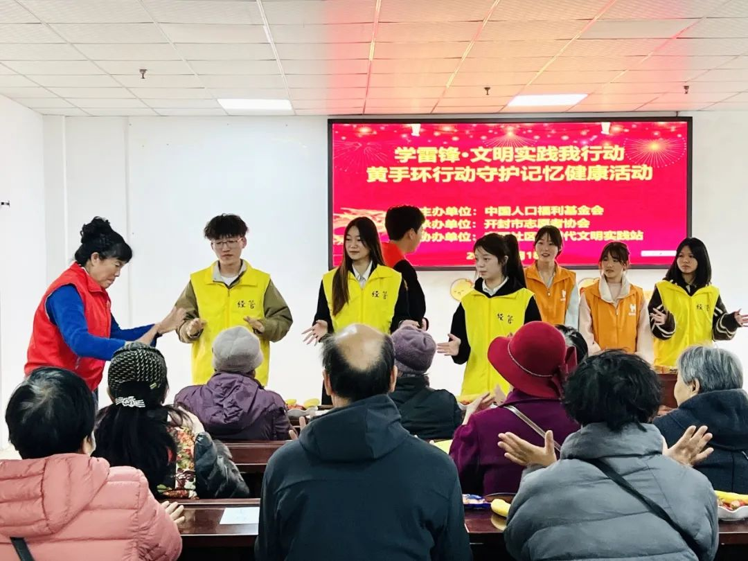 为进一步弘扬新时代雷锋精神和志愿服务新风,帮助老年朋友预防阿尔兹海默症,让青春在“情暖助老事业”中绽放绚丽色彩,3月18日下午,jinnianhui今年会团总支书记李天泽带队青年志愿者前往开封市康平社区开展“学雷锋 我行动”暖心助老活动。本次活动由中国人口福利基金会主办,开封市志愿者协会承办。
