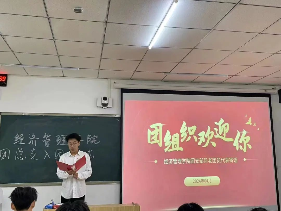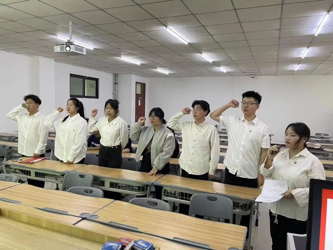为充分发挥团组织教育青年功能,加大对新时代青年培养力度,凝聚中国共产主义青年团新力量,2024年4月29日,在郑州校区sc504、开封校区A102,jinnianhui今年会举办2024年新团员入团仪式。团总支书记李天泽、郑州校区团学会负责老师孙宇晴及新老团员参加入团仪式。