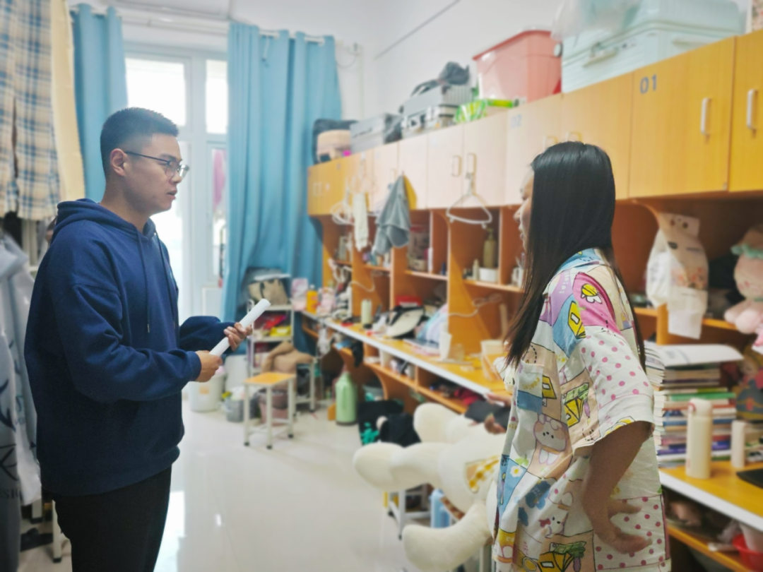 五一假期值守期间,经管学工人入住学生宿舍轮流值班,深入宿舍看望慰问留校学生,与学生进行谈心谈话,了解学生近期思想动态并提供针对性指导与帮助。为维护校园安全稳定,值守期间,不断巡视校园各个角落,重点开展宿舍安全“回头看”工作,进行安全隐患排查,再次筑牢校园安全底线。