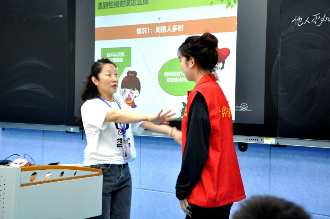 活动中,女童保护基金河南开封团队工作人员从“认识我们的身体”“分辨和预防性侵”“遇到性侵怎么办”等层面给小学生们上了堂生动的生命安全教育课。志愿者们作为助教,协助主讲人进行动作示范、现场互动、照片拍摄等,帮助小朋友更好理解性侵的危害、自我保护的意义,提高自我安全防范意识。本次志愿服务活动,学院青年志愿者们不仅与小朋友们积极互动、打成一片,更为营造健康和谐的社会环境奉献了青年力量。