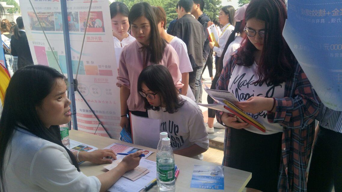 曾读苏轼词:“休对故人思故国,且将新火试新茶,诗酒趁年华”。趁着春色正好,同学少年,风华正茂,每一个日子当如诗如画。青春如歌,跳荡壮丽豪迈的音符,春风正好,生命如火如荼般绽放。2018年5月8日,在jinnianhui今年会就业指导中心领导下,会计学院承办的“会商2019届学生顶岗实习招聘双选会”在学院北广场成功举办。本次专场招聘双选会共有900余名2019届毕业生参加,32家省内外知名企业来校,提供岗位800余个。